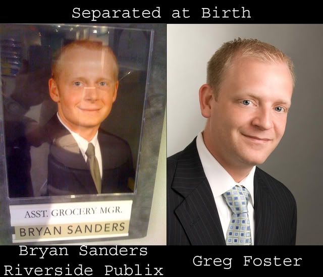 The "gay" Publix has a new Assistant Grocery Manager (AGM) and while we were shopping for tailgating foods yesterday we had to do a double take; we thought Jacksonville Confidential staff member and legal counsel Greg Foster had changed professions. Upon further inspection we realized that it wasn't Greg but was, in fact, AGM Bryan Sanders. Look!
