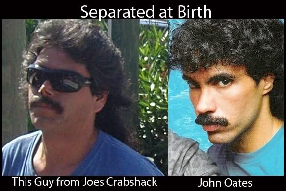 We traveled out to the beach last week for a few preliminary "opening of the beaches" rounds at Joe's Crab Shack and who did we see? None other than John Oates' twin. Seriously, check it out!