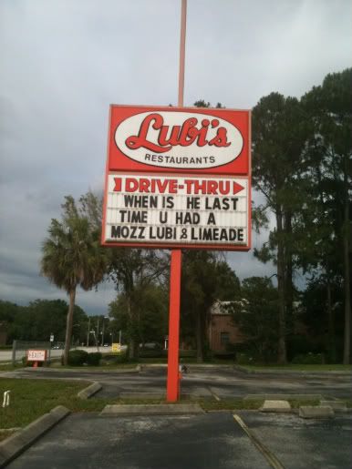 Lubi’s hot subs restaurant is a long time Jacksonville staple. There are 4 locations in town, 3 on the Southside and 1 at the Beach. They offer the standard sandwich shop fair like Tabouli and Camel Riders, Ham and Cheese Sandwiches, and Salads but what they are most known for is their signature hot sub called the “Lubi”. The original “Famous Lubi” has lean ground sirloin, American cheese, and onions, all steamed in a sub roll and it’s definitely a knife and fork sandwich. Jason popped in to the Mandarin location on Sunbeam Road (3930 Sunbeam Road) last night for the first time in probably 15 years and ordered a Mozzarella Lubi, which is the Famous Lubi topped with sour cream, mozzarella cheese and marinara sauce. Sure, it looks pretty disgusting in the picture below but trust us, the hot subs are FANTASTIC. The restaurant is also known for it’s fresh squeezed Cherry Limeades, a delicious drink to wash down that sub. If you’re a Jacksonville native you’ve probably had one at some point in your life, if you haven’t then we suggest you go out and get one soon. You won’t be disappointed, but you might be in the bathroom for a while the next day. There’s also a 20% Off Coupon available online if we have to give you even more incentive to try it out.