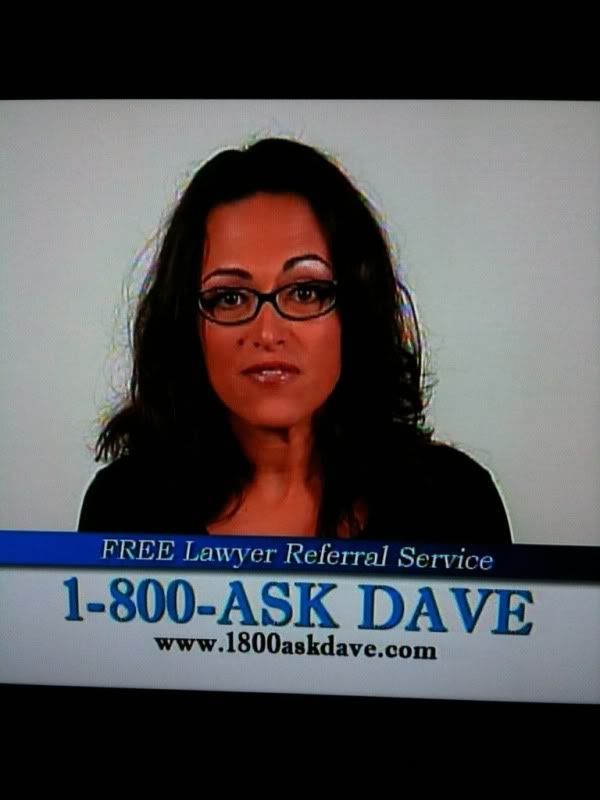 Obviously this chick from the Ask Dave commercials needs some additional help from the Lawyer/Doctor referral line…maybe an eyebrow waxing specialist. ”Betta axe Gary” instead.