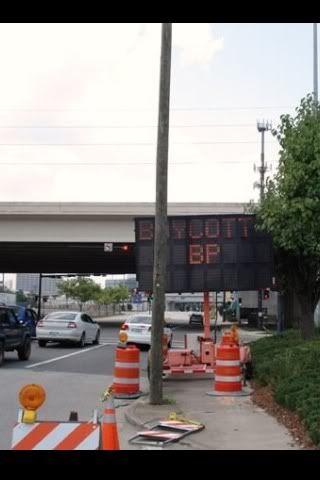 Our good friend Sarah D snagged a picture of this hi-jacked street sign on San Marco Boulevard at the on ramp to I-95. ”Boycott BP”. Nice work!