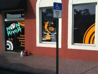 Our most favorite pizza place in town (and in Fernandina), Moon River Pizza (1176 Edgewood Avenue South), is expanding to provide for more seating. This is FANTASTIC news, you guys know it’s been pure hell trying to get a table at peak hours, which is pretty much every night at dinner time. Along with the expansion they’ve also added some fancy new window art from our very own official graphic artists at Compound Graphics, take a look…